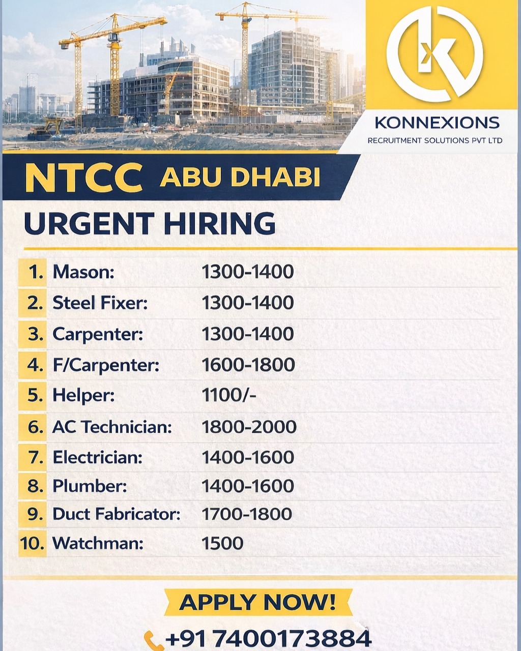 A facilities management company in Saudi Arabia is hiring Electrical Technicians.